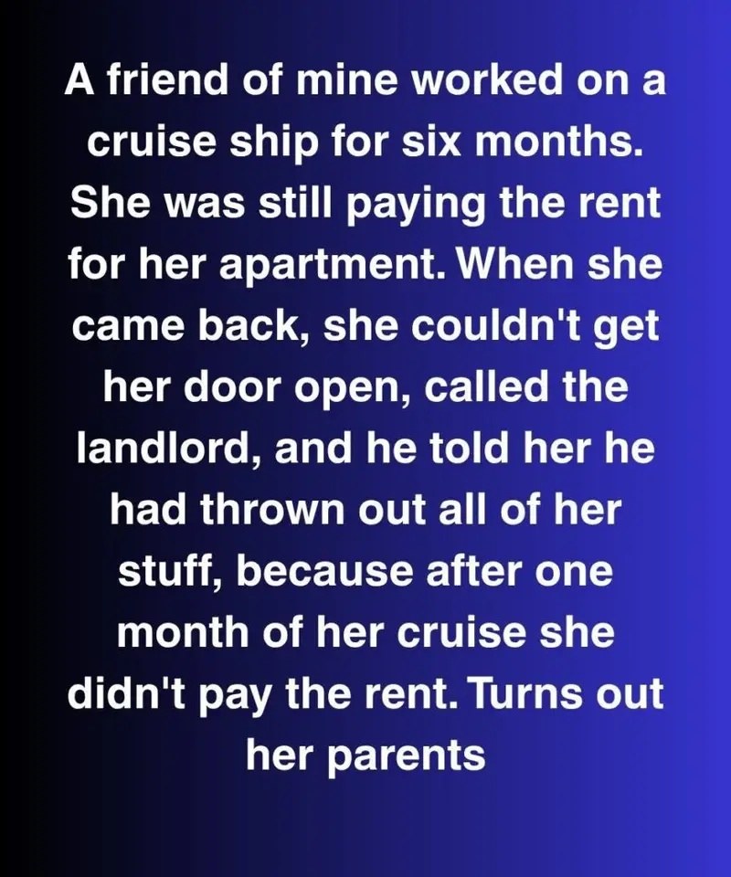 A friend of mine, Noora, worked on a cruise ship for six months while her parents covered her rent. When she returned, she couldn’t get into her apartment. The landlord, Mr.
