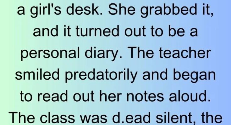 The girl sat motionless, her face burning red, eyes wide with panic as the teacher recited her private thoughts like some twisted performance.