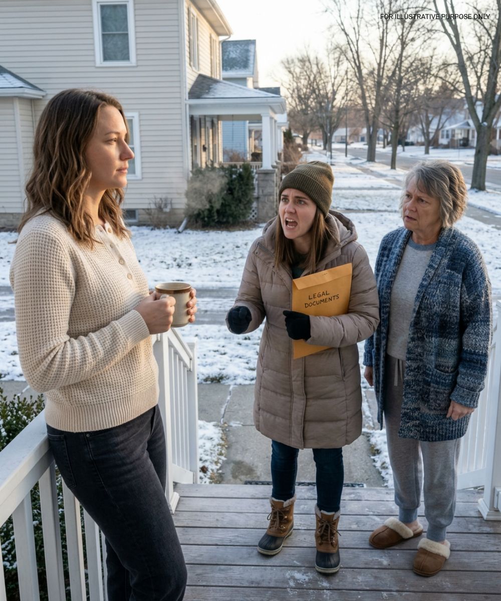She stormed onto the porch, waving the letter, her face flushed red.