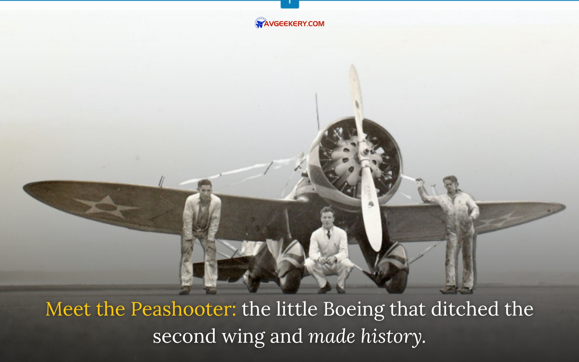 On 20 March 1932, the first Boeing P-26 Peashooter took to the skies for the first time. A rare sight nowadays, the P-26 was a significant step forward from biplane pursuit ships toward the future of fighter aircraft designs. The stubby little fighter was significant in many ways, but none more so than being the first production monoplane in squadron service with the United States Army Air Corps (USAAC).