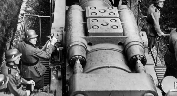 The most famous—even infamous—examples of large artillery pieces mounted on railway cars occurred during the Second World War, when Germany employed these gigantic weapons in the sieges of Leningrad and Sevastopol. During the latter siege, the Germans had to build a special railway spur along with four semi-circular tracks for the gun’s car to transverse, while it took twenty-five cars stretching nearly a mile to transport the Schwerer Gustav to the Crimea.