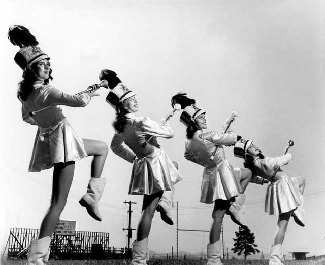 Drum majorettes were kitted out in satin uniforms with fringe, white boots, flashy hats with feathers, and other accouterments that made them sparkle and shine at school events. And, let’s not forget the baton twirling!
