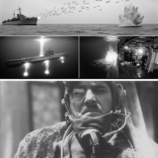 There is no explosion, no thunderous detonation that might signal a miss, just a scraping sound overhead like someone dragging metal rods across the hull. Then nothing. 3 seconds of absolute silence. The crew exchanges glances. Every man aboard knows what depth charges sound like. They roar. They shake the boat. They announce their presence whether they hit or miss. This is different. This is quiet.